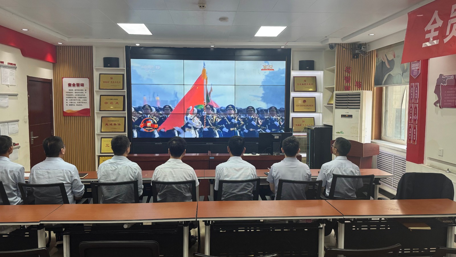歷史燭照未來(lái),精神永續(xù)傳承。為深切緬懷在抗日戰(zhàn)爭(zhēng)中英勇獻(xiàn)身的革命先烈,大力弘揚(yáng)偉大的抗戰(zhàn)精神,引導(dǎo)全體黨員、職工銘記光輝歷史、堅(jiān)定理想信念、強(qiáng)化責(zé)任擔(dān)當(dāng),9月3日,機(jī)運(yùn)工區(qū)黨支部組織開展了“銘記歷史偉業(yè),傳承紅色基因”主題黨日活動(dòng),組織全體黨員集中觀看紀(jì)念中國(guó)人民抗日戰(zhàn)爭(zhēng)暨世界反法西斯戰(zhàn)爭(zhēng)勝利80周年閱兵儀式現(xiàn)場(chǎng)直播。上午九時(shí)整,機(jī)運(yùn)工區(qū)全體黨懷著無(wú)比崇敬與激動(dòng)的心情,目光齊聚屏幕。伴隨著激昂雄壯的國(guó)歌奏響,鮮艷的五星紅旗在天安門廣場(chǎng)冉冉升起,大家心潮澎湃,肅然起敬。隨后,規(guī)模宏大、氣勢(shì)磅礴的閱兵式正式開始。屏幕上,一個(gè)個(gè)整齊劃一、威武雄壯的徒步方隊(duì),邁著鏗鏘有力、撼人心魄的步伐走過(guò)檢閱臺(tái),堅(jiān)毅的眼神、挺拔的身姿,充分展現(xiàn)了新時(shí)代軍人聽黨指揮的忠誠(chéng)品格和能打勝仗的過(guò)硬本領(lǐng);一列列代表著國(guó)家科技實(shí)力與國(guó)防現(xiàn)代化建設(shè)最新成果的裝備方隊(duì),鐵流滾滾,氣勢(shì)如虹,尖端武器依次亮相,彰顯了捍衛(wèi)國(guó)家主權(quán)、安全、發(fā)展利益的堅(jiān)定決心與強(qiáng)大能力;雄鷹呼嘯,劃破長(zhǎng)空,戰(zhàn)機(jī)編隊(duì)以精準(zhǔn)的隊(duì)形和磅礴的氣勢(shì)接受檢閱,描繪出壯美的藍(lán)天畫卷,宣示著捍衛(wèi)國(guó)家領(lǐng)空安全的鋼鐵意志。整個(gè)閱兵過(guò)程,秩序井然、威武雄壯、氣勢(shì)恢宏,生動(dòng)詮釋了人民軍隊(duì)“聽黨指揮、能打勝仗、作風(fēng)優(yōu)良”的強(qiáng)軍目標(biāo),全方位展示了在黨的堅(jiān)強(qiáng)領(lǐng)導(dǎo)下,國(guó)家日益強(qiáng)大的綜合國(guó)力和維護(hù)世界和平的堅(jiān)定信念。屏幕前,黨員們?nèi)褙炞ⅲ瑹o(wú)不被這震撼人心的場(chǎng)面所感染,民族自豪感與榮譽(yù)感油然而生,現(xiàn)場(chǎng)不時(shí)響起由衷的贊嘆和熱烈的掌聲。通過(guò)本次“銘記歷史偉業(yè),傳承紅色基因”主題黨日活動(dòng),機(jī)運(yùn)工區(qū)黨支部全體黨員經(jīng)歷了一次深刻的精神淬煉與思想升華。大家的歷史使命感、民族自豪感、崗位責(zé)任感得到顯著增強(qiáng),紛紛表示以更加飽滿昂揚(yáng)的精神狀態(tài)、更加求真務(wù)實(shí)的工作作風(fēng)、更加開拓創(chuàng)新的進(jìn)取意識(shí),恪盡職守,銳意進(jìn)取,全力以赴保障原煤運(yùn)輸安全高效,為工區(qū)及公司的持續(xù)高質(zhì)量發(fā)展貢獻(xiàn)全部力量!